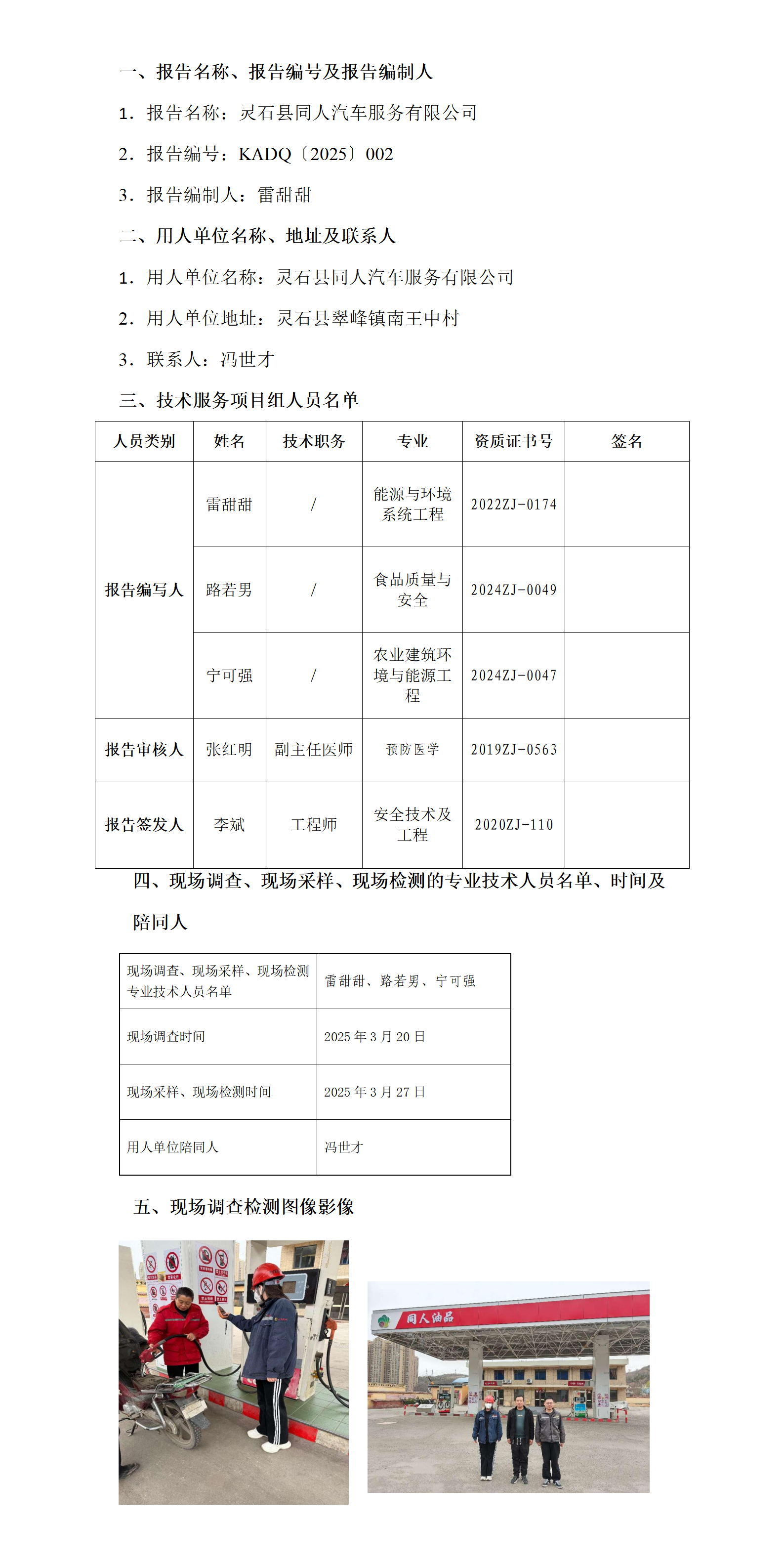 灵石县同人汽车服务有限公司职业病危害因素定期检测报告