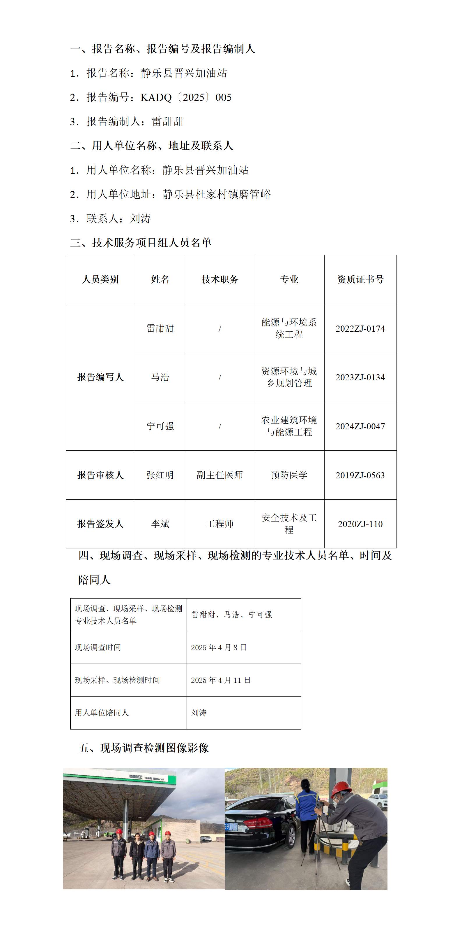 静乐县晋兴加油站职业病危害因素定期检测报告