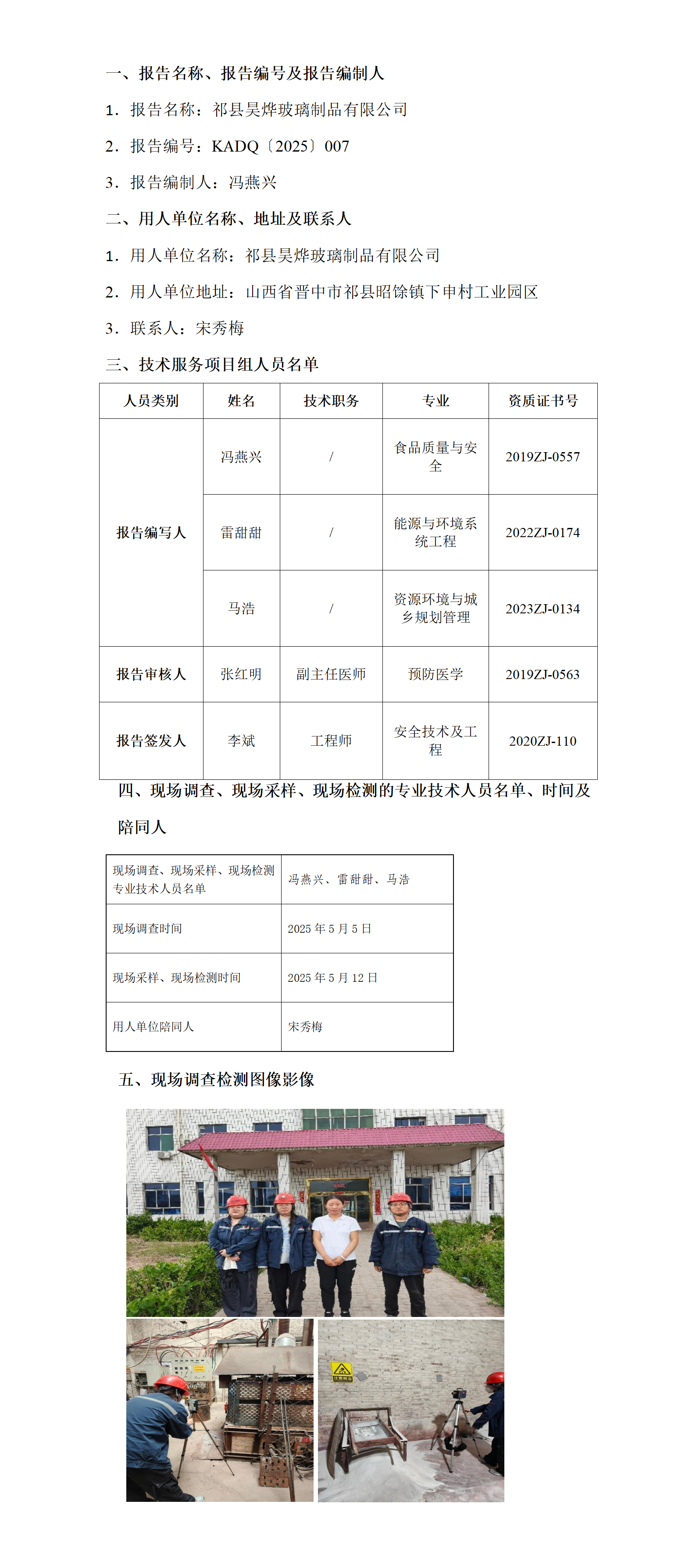 祁县昊烨玻璃制品有限公司职业病危害因素定期检测报告