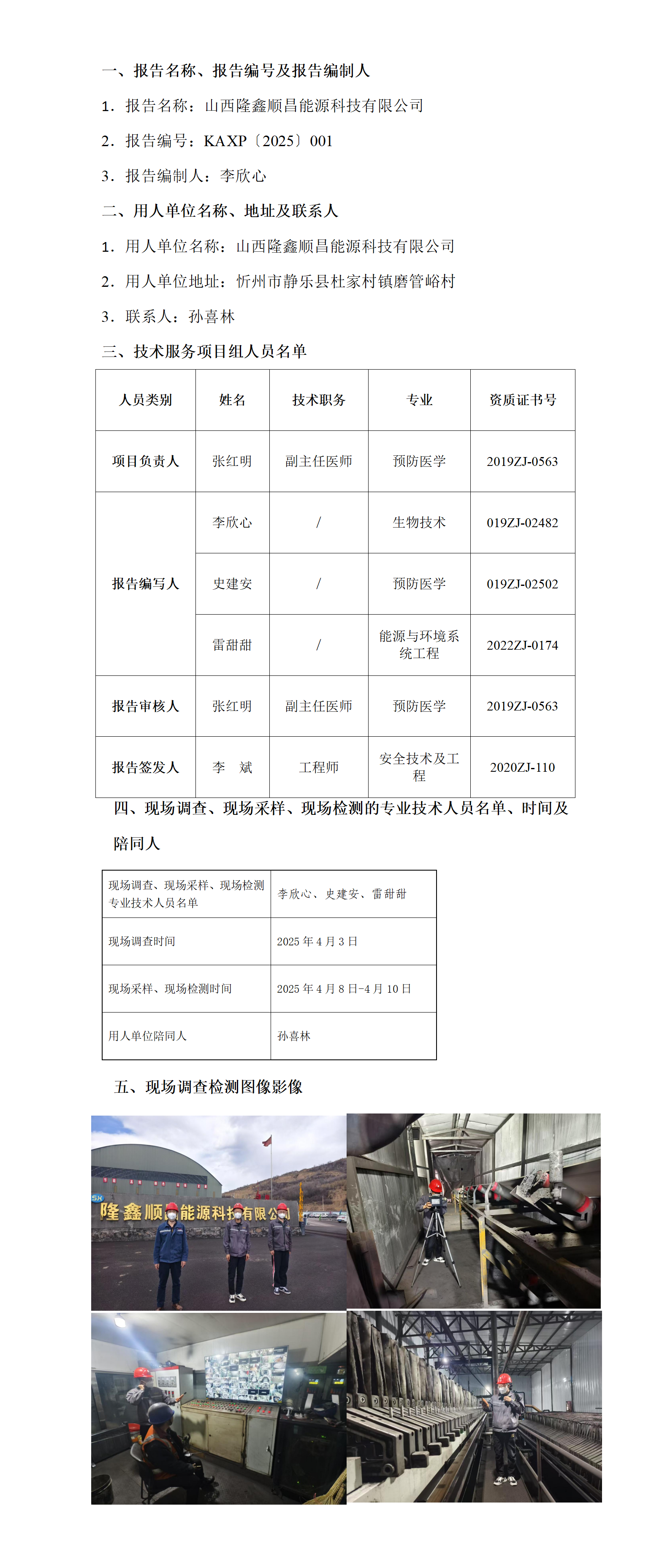 山西隆鑫顺昌能源科技有限公司职业病危害现状评价报告