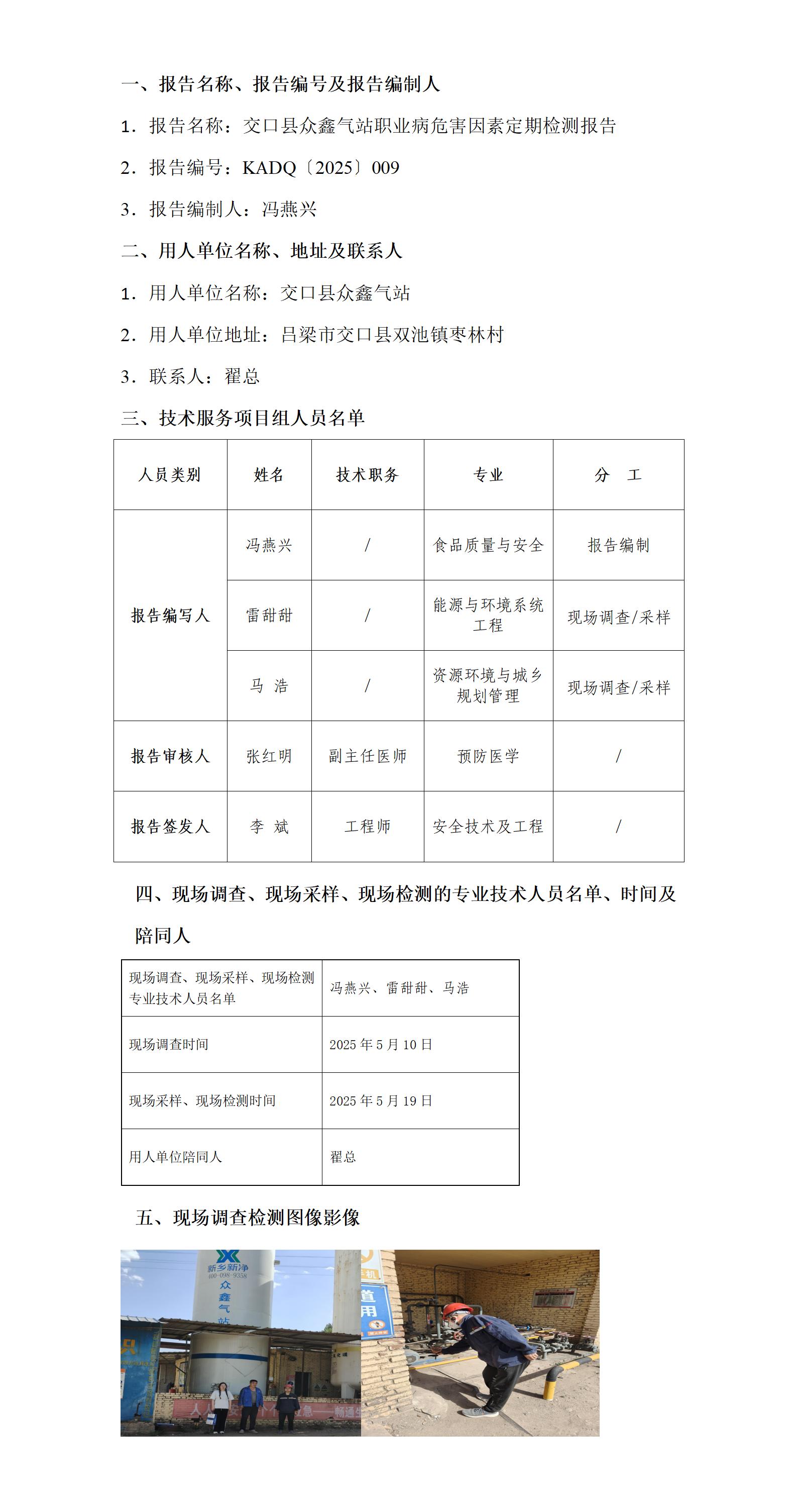 交口县众鑫气站职业病危害因素定期检测报告