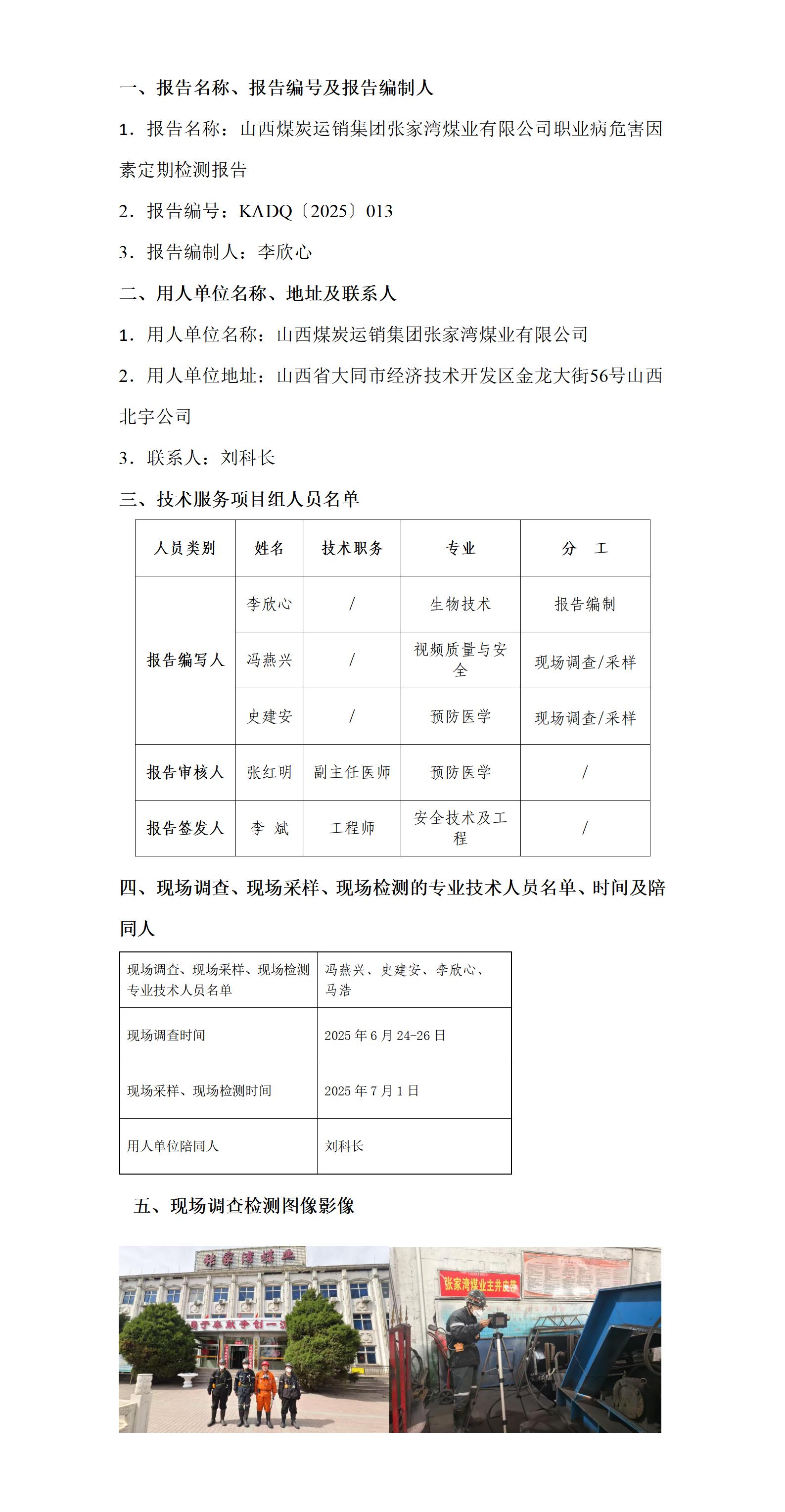 山西煤炭运销集团张家湾煤业有限公司职业病危害因素定期检测报告