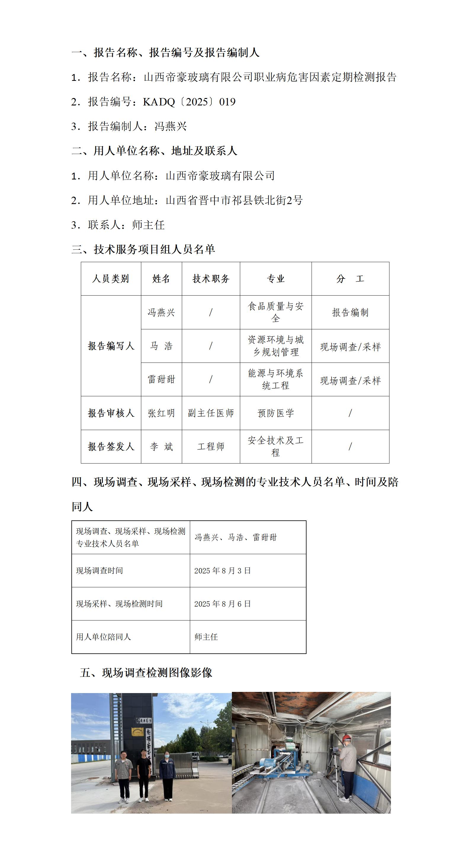 山西帝豪玻璃有限公司职业病危害因素定期检测报告