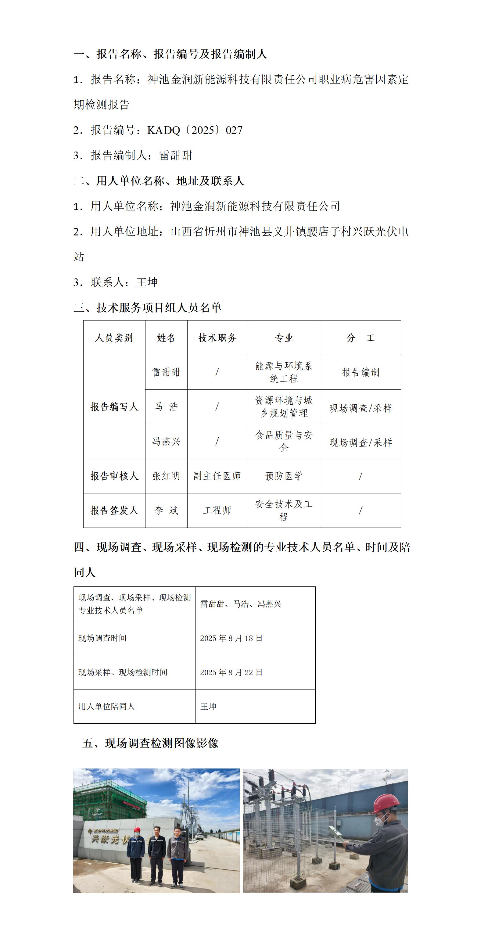 神池金润新能源科技有限责任公司职业病危害因素定期检测报告