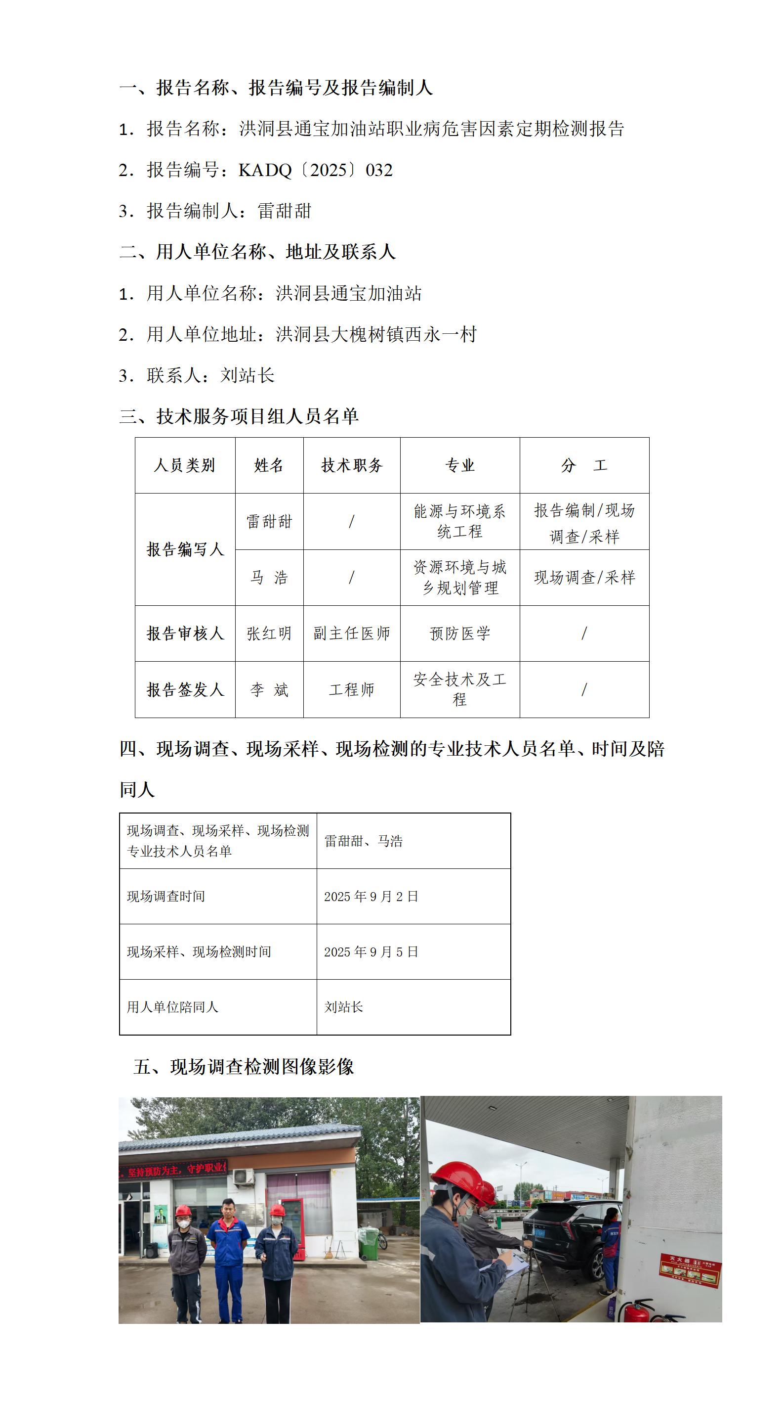 洪洞县通宝加油站职业病危害因素定期检测报告