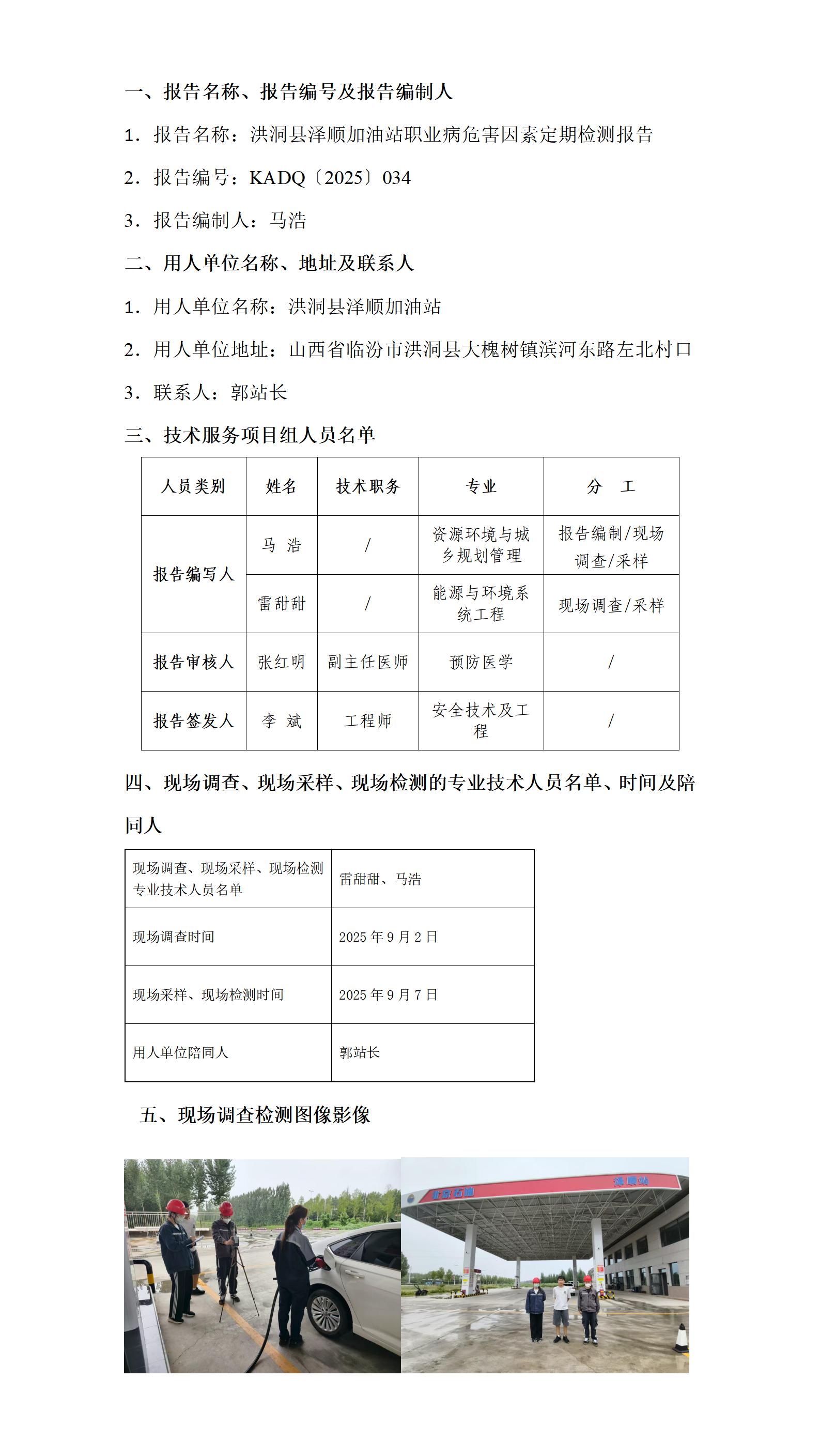 洪洞县泽顺加油站职业病危害因素定期检测报告