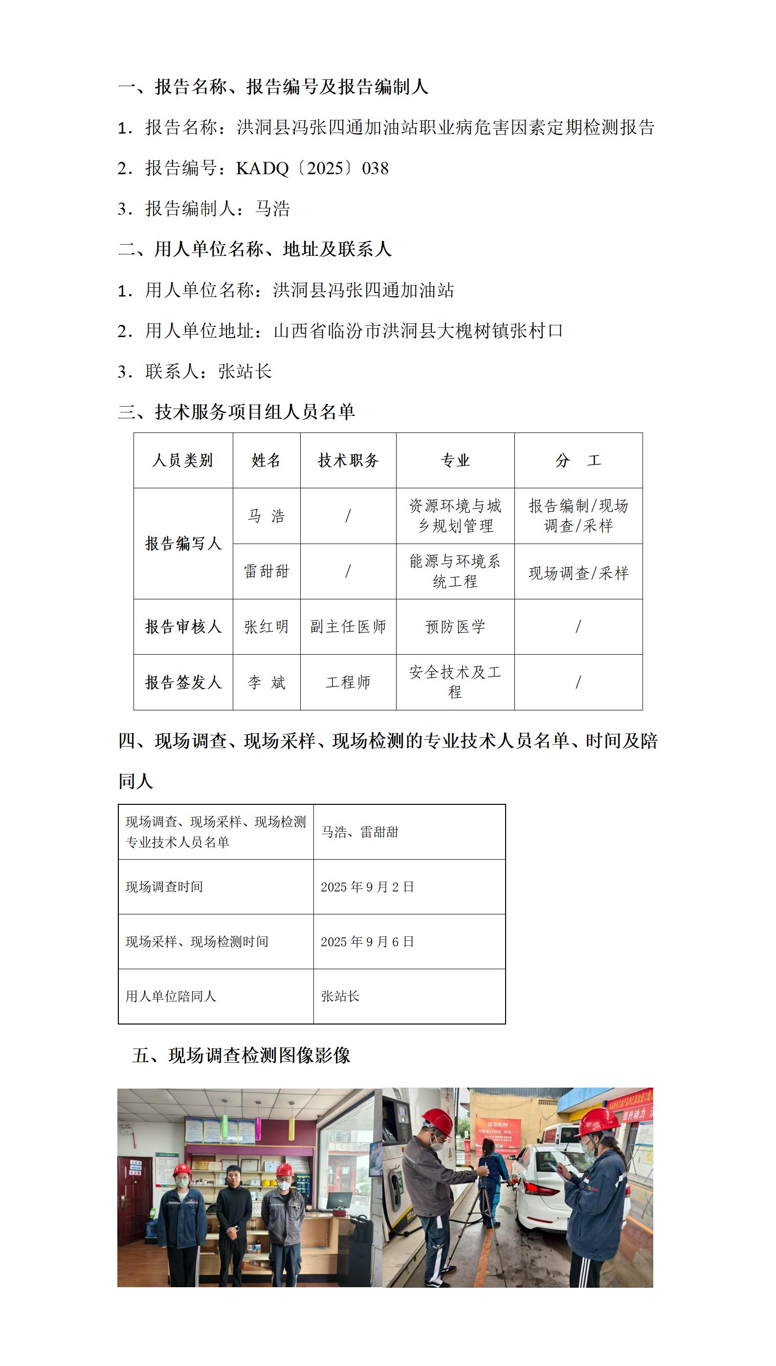 洪洞县冯张四通加油站职业病危害因素定期检测报告