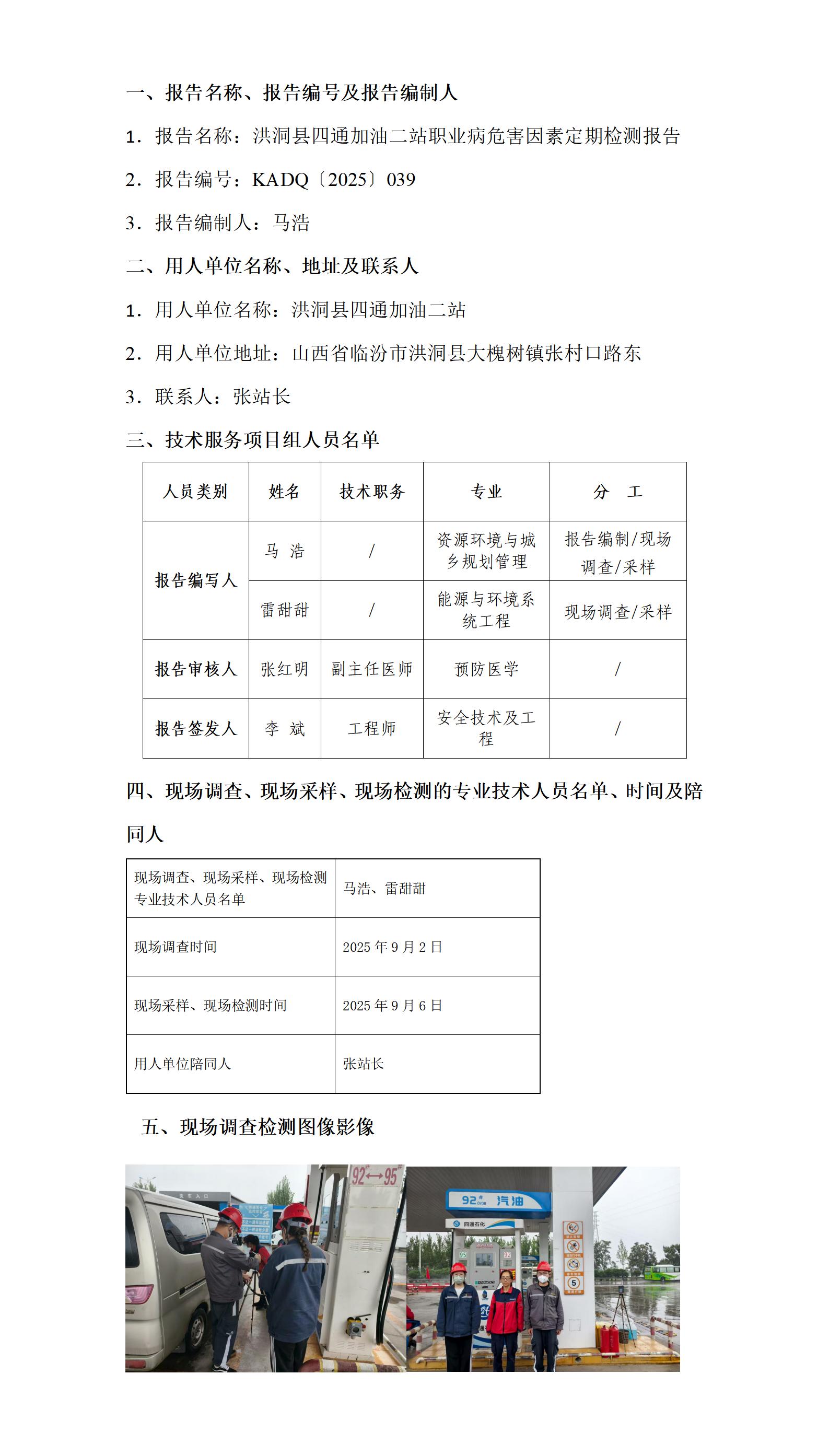 洪洞县四通加油二站职业病危害因素定期检测报告