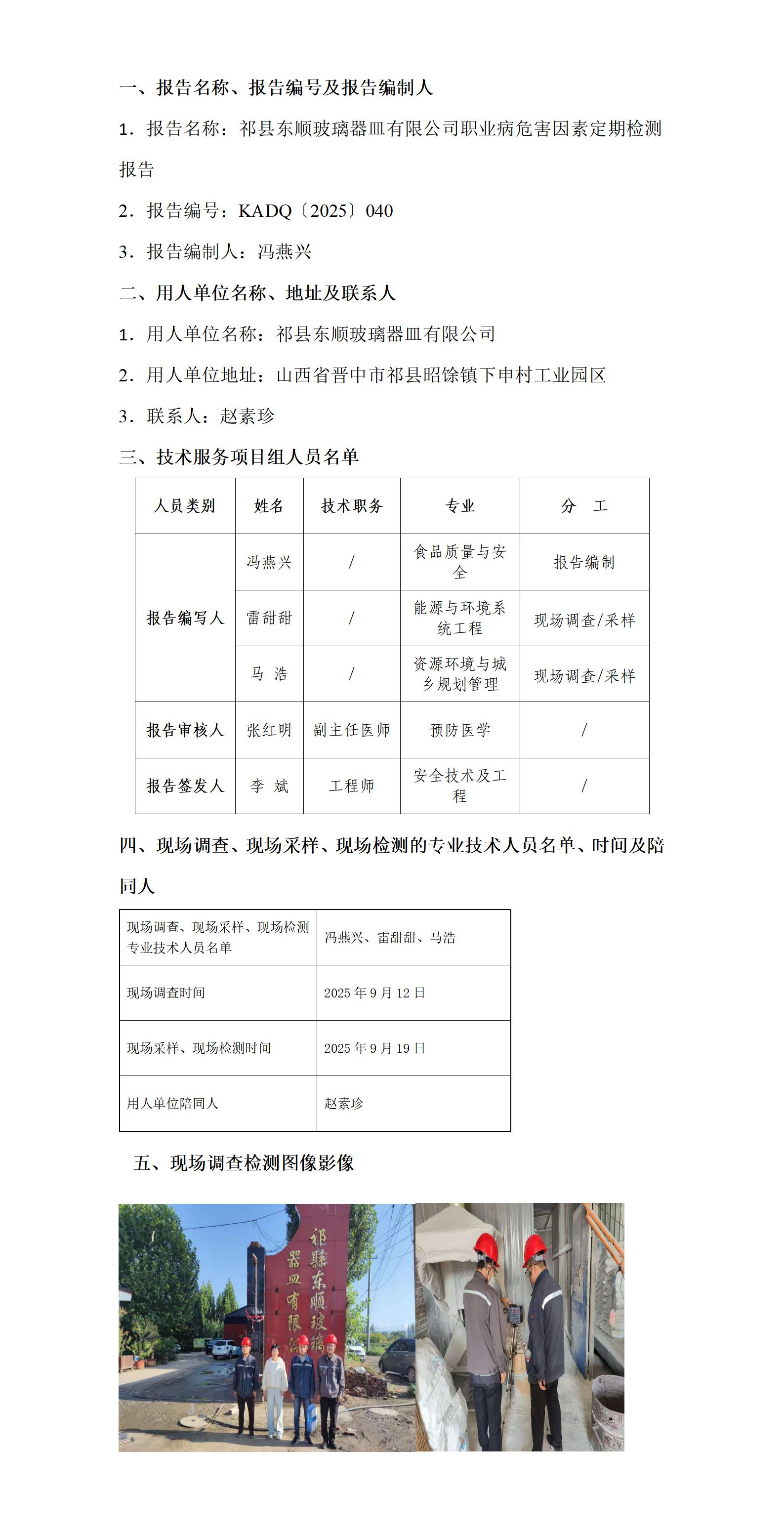 祁县东顺玻璃器皿有限公司职业病危害因素定期检测报告